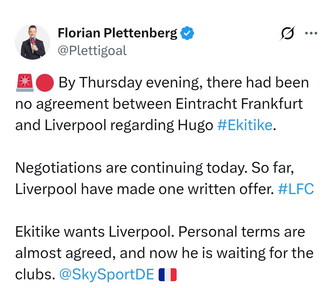Ekitike transfer daleki od ideału szczególnie biorąc pod uwagę kwotę, ale teraz już nikogo innego na rynku nie ma, a żeby być lepszym od Nuneza to wystarczy potrafić trafić w pustą bramkę i czasami podać celnie do przodu (opcjonalnie)
