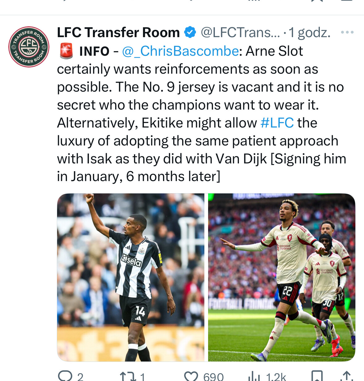 Newcastle tak bardzo “szuka” nowego napastnika jak swego czasu FSG nowego klubu, gdy były plotki o sprzedaży Liverpoolu. Te wszystkie odrzucenia Sesków i Ekitików to pewnie fejki i nigdy poważnie nie planowali transferu napastnika. Tak żeby pokazać Isakowi, że próbują, ale nie ma nikogo na zastępstwo, więc musisz zostać.