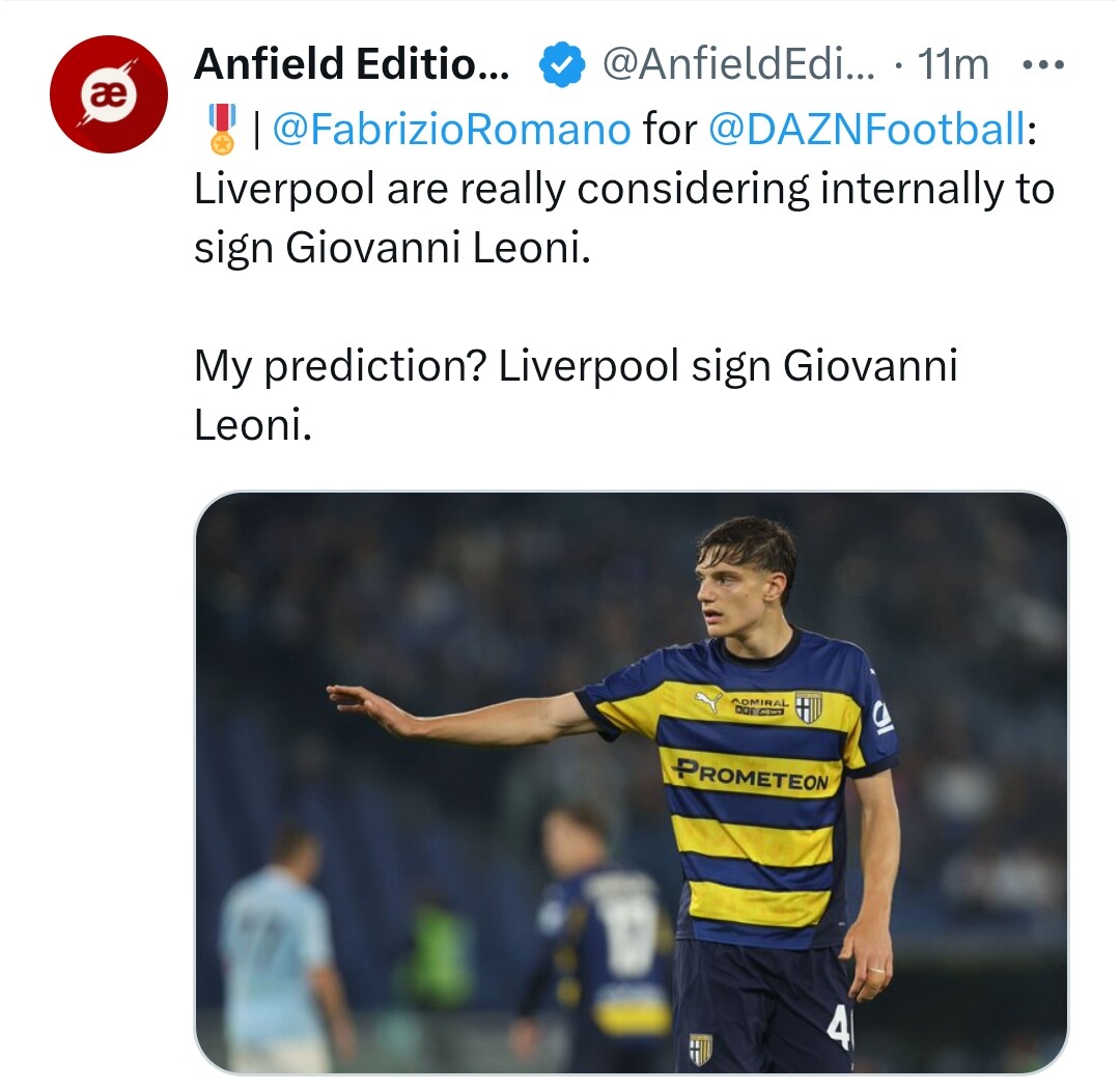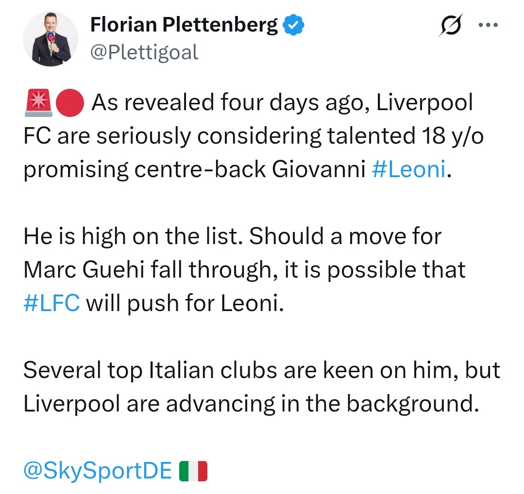 Gdy się potwierdzi moja teoria to oznacza że Konate prawdopodobnie odchodzi. Nie ma miejsca dla Virgila, Konate, Guehiego i Leoniego razem w dłuższej perspektywie. A przynajmniej tak mi się wydaje.