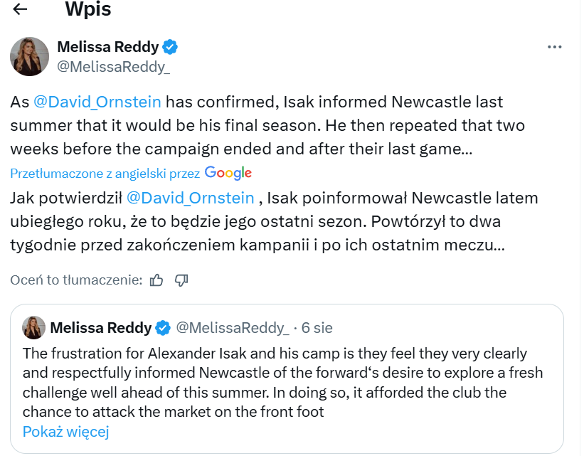 No dobrze możesz się obrażać na to jak wygląda rynek i prawilnie posadzić Isaka na 3 lata na trybunach tylko co Ci to da? Jako klub zyskasz szacunek u garstki prawilniakow, a tak poza tym? Tracisz swojego najlepszego piłkarza nie dostając za to ani grosza, nie wzmacniasz składu nikim innym bo psr. Aha no i dalej płacisz mu co tydzień kontrakt. To takie trochę na złość babci odmroze sobie uszy. Rynek jest brutalny ale jeżeli aspirujesz do bycia wielkim klubem to musisz umieć zarządzać takimi sytuacjami. Mi też moralnie się to nie podoba, ale tak to niestety działa. Newcastle zmarnowało swoją szansę żeby wyjść z tego dealu z twarzą, ale może naucza się na przyszłość