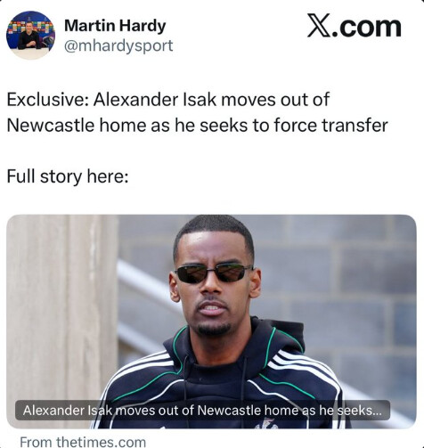 Napięcie jest tak duże, że niektórzy sędziowie i zawodnicy całkowicie go ignorują na boisku treningowym. Widać wyraźnie, że jest między nimi konflikt. Źródła sugerują, że kapitan Jamaal Lascelles doradził właścicielom klubu, aby wzięli pod uwagę życzenia Isaka, wskazując, że nie jest to tylko drobna sprawa i że może ona mieć wpływ na dalszą harmonię.