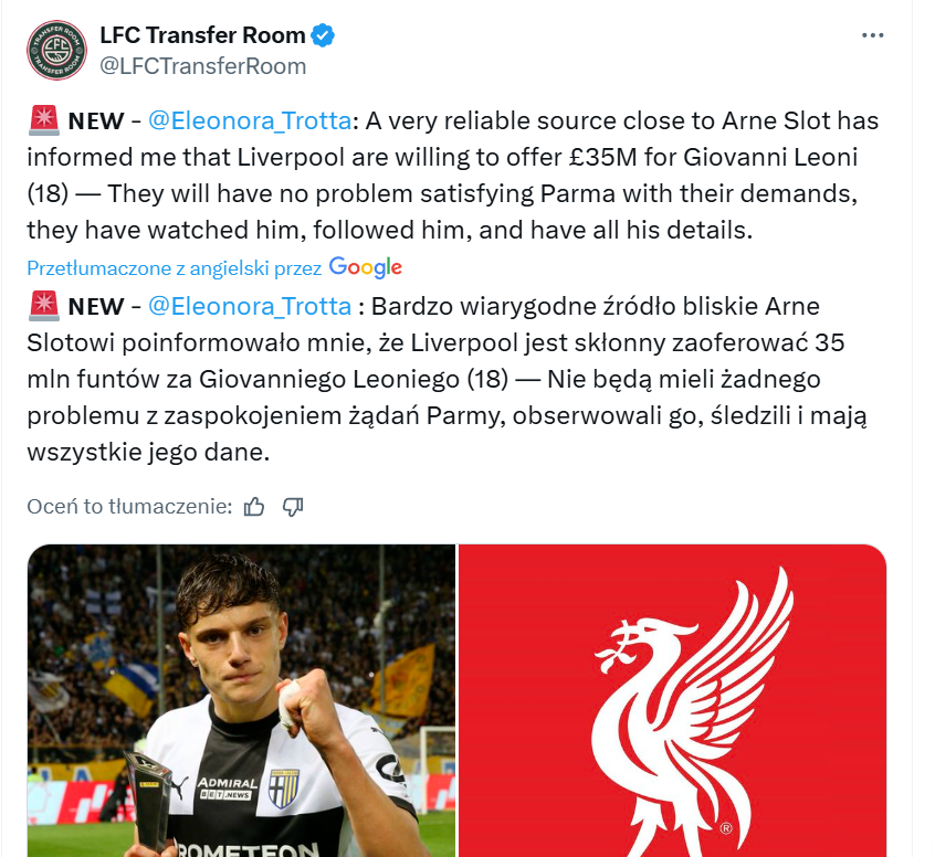 Jeżeli ten Leoni jest takim kozakiem jak mówią to pasowało by się z bólem serca pozbyć Gomeza. Solidny piłkarz natomiast zdrowie nie dojeżdża i już za długo to tolerowaliśmy tylko kto go kupi skoro on ciągle ma problemy zdrowotne? Jeśli zamierzamy grać na szybkich bocznych obrońców to Salah pewnie będzie grał coś na wzór podwójnej 10 z wirtzem w zależności od rywala(inna opcja to klasyczne skrzydła z gakpo) dlatego ja bym się nie pozbywał elliotta który mógłby sobie pograć na tej pozycji za Mo bo ten jednak jest coraz starszy. Szobo woli 8 sam mówił. Jeśli sprowadzimy isaka guehiego i Leoniego będzie to fantastyczne okno. Sprzedać natomiast możemy doaka a też szkoda bo gdyby dostawał więcej czasu coś by z niego było