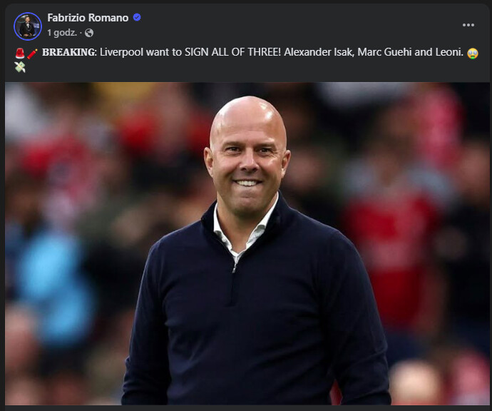 Szczerze powiedziawszy jak mam wybierać miedzy Isakiem a Baracolą to chyba francuz jest dla mnie wyżej w hierarchii. Na skrzydłach mamy za mało piłkarzy, którzy realnie mogą coś nam dać. Już pojawia się narracja o Chiesie. Mówimy ze potrzebujemy dwóch obrońców bo van Dijk coraz starszy a Salah zostaje bez żadnego realnego zmiennika(ja Włocha nie liczę bo nic nie dał w tamtym sezonie).Baracola mógłby grać na obu skrzydłach i wtedy byśmy kombinowali z napastnikiem ustawiając tam jego lub Gakpo. Mam nadzieję, że po cichu kombinują jakąś niespodziankę na prawą stronę.