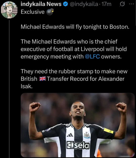 Isak tutaj przyjdzie ale po meczu z Newcastle nie wcześniej. Mimo ze kupimy isaka nasza ławka jest tragiczna. Chiesa u mnie na plus dac mu szansę. Może chiesa wejdzie na obroty i wygryzie Gakpo ![]()