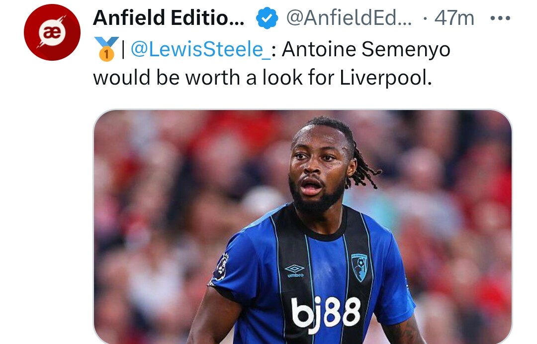 Semenyo nie jest zawodnikiem typowym dla Liverpoolu. Bedzie drogi a raczej można kogoś dorwać z podobnymi umiejętnościami i większym sufitem. Wiek 25 to u nas górna granica bierzmy zawodników typko jak naprawdę sa nocni i nie maja alternatyw. Patrz isak. Ponadto reprezentuje Ghanę więc jest puchar szamana. W tym roku nie jedzie na puchar.