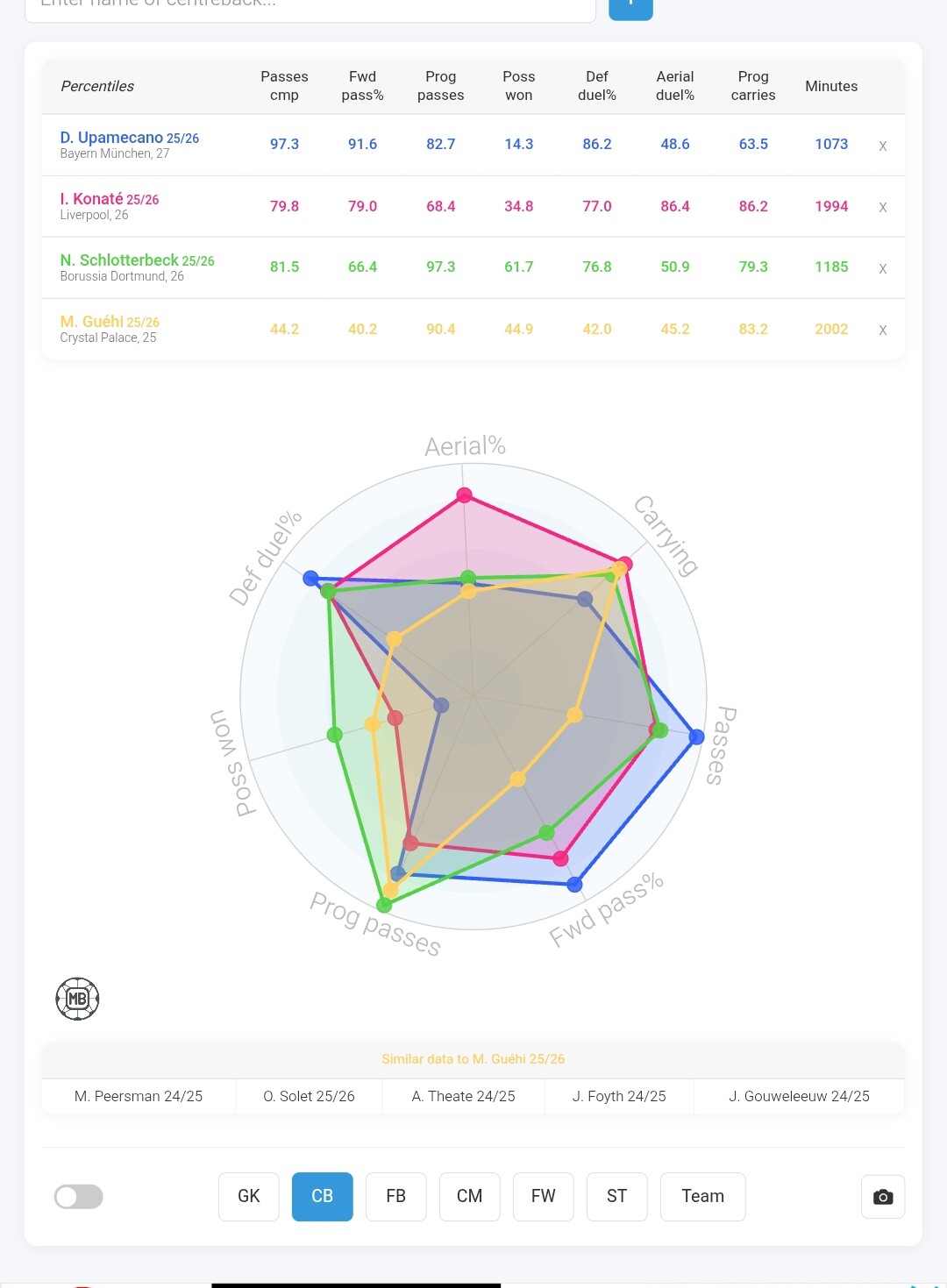 Schlotterbeck, guehi, upamecano, ordonez.