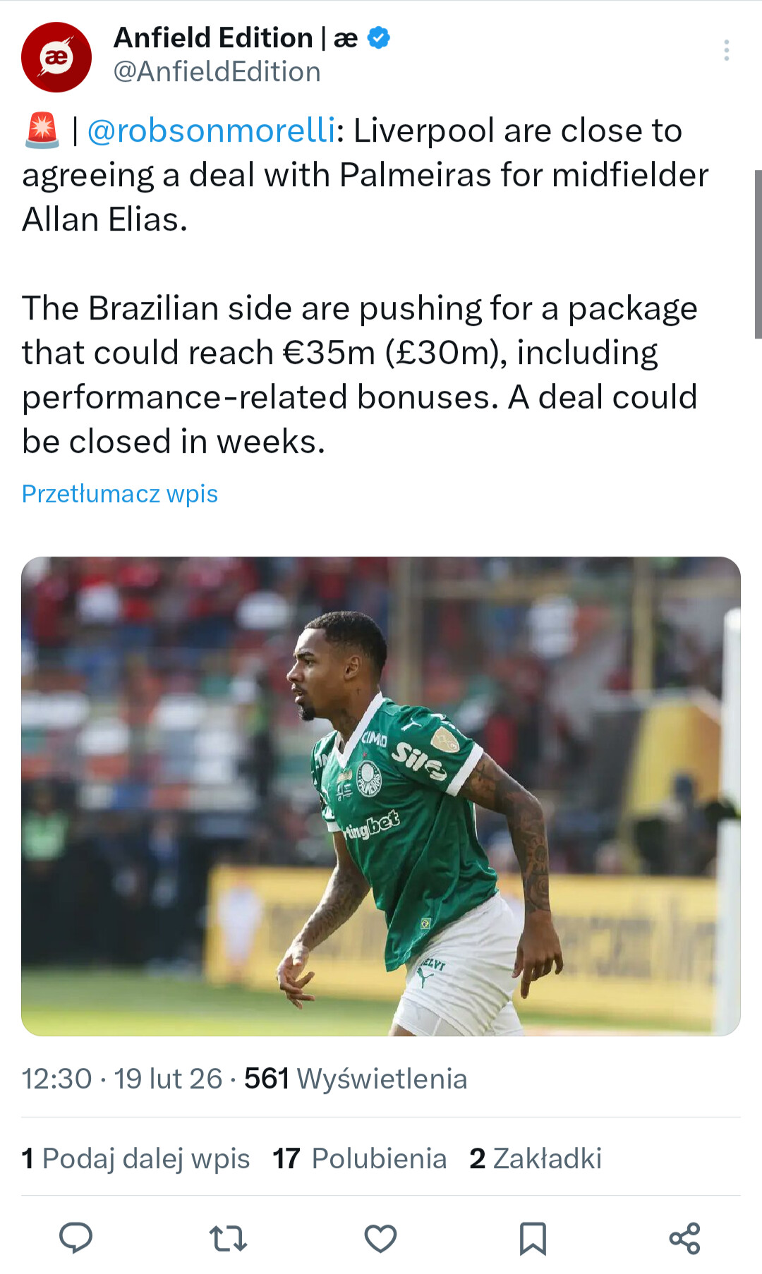 Kompletnie nie kojarzę źródła, wrzucam w ramach ciekawostki. Zawodnik ciekawy, lewonożny prawoskrzydłowy, choć grywał też w środku pomocy i na lewym wahadle . Swoją drogą Brazylia wydaje się mieć obsadzoną tę pozycję na lata, niemniej Estavao i Rayana są na ten moment zdecydowanie bardziej utalentowani.
