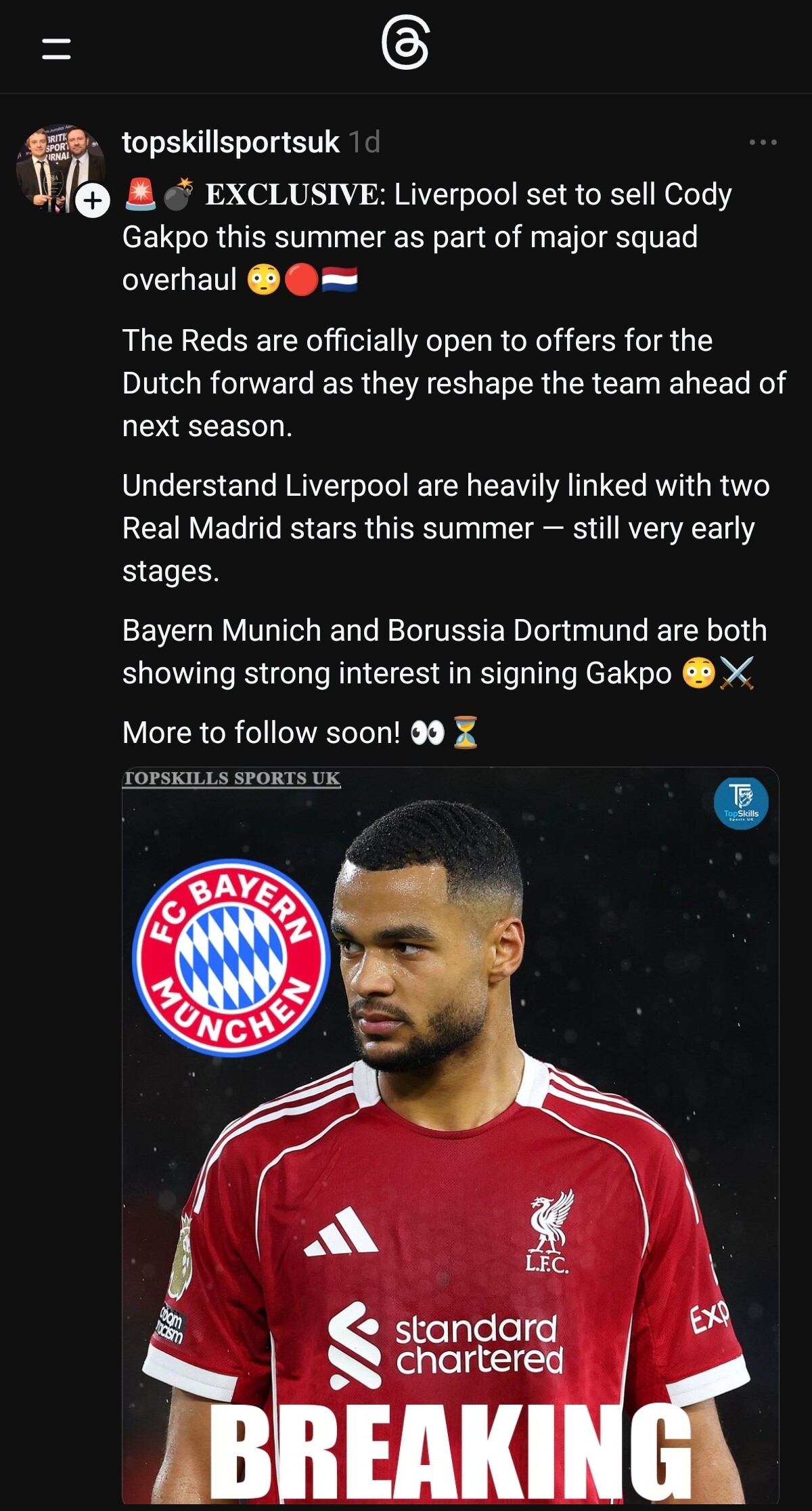 Ale wy tak na serio z tą sprzedażą Maca ??? Pewnie, że około 80 melonów można by rozważyć ale chcieć się go pozbyć to chyba nieśmieszny żart. Gość w poprzednim sezonie topka ligi w pomocy, wychwalanie go pod niebiosa i teksty typu “Real ręce precz od Alexisa” a teraz, że słabo biega i nie dowozi. A kto dzisiaj u nas dowozi poza Alim i Szobo, no i może jeszcze Wirtz i Ekitike. Kupimy za niego kogoś perspektywicznego bo goscie z topu albo nie do wyjęcia albo miliony monet i będzie lament, że się znowu w lato osłabiliśmy. I bez odejścia Maca potrzeba kogoś do srodka a jak się jeszcze jego pozbędziemy to znowu będzie krater a nie tylko dziura do załatania.