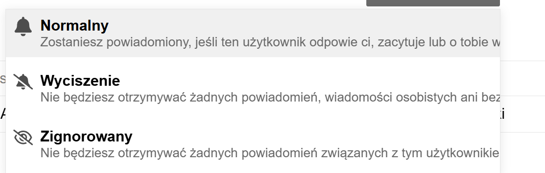 Normalny, wyciszenie i zignorowany. Użycie trzeciej opcji powoduje, że nie pojawia się opcja pokaż odpowiedzi.