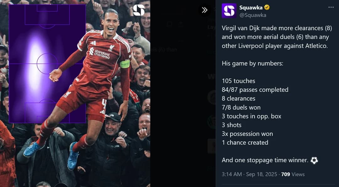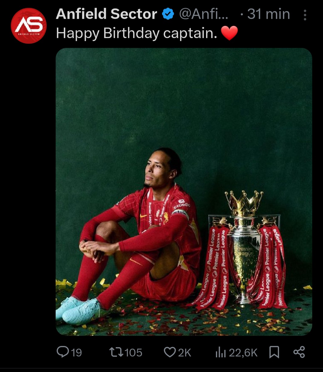 Zagłosowałem na niego jako MotM bo moim zdaniem wyczyścił masę sytuacji i bez Virgila mogło być krucho w tym meczu. Tym bardziej, że Kerkez i Konate nie dawali mu spokoju, ani z prawej z lewej strony.