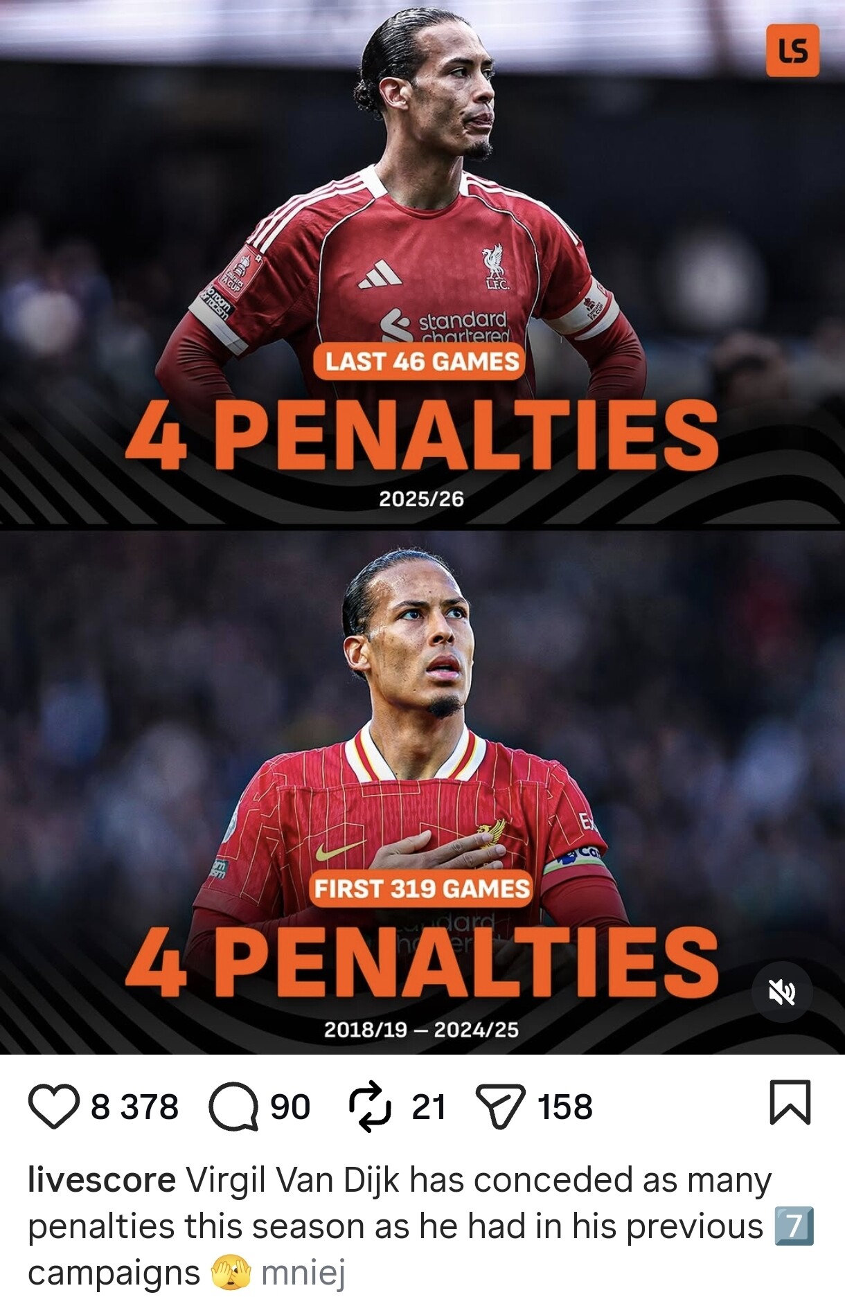 W tym meczu to była chyba jedyna przegrana główka , niestety zakończona bramką, graliśmy mocno ofensywnie i nie było wystarczającego wsparcia dla obu ŚO i Slot musiał mieć świadomość że taka kontra może im się w końcu udać. Poziom frustracji rośnie, a poziom skupienia często spadać z biegiem meczu takiego jak ten.