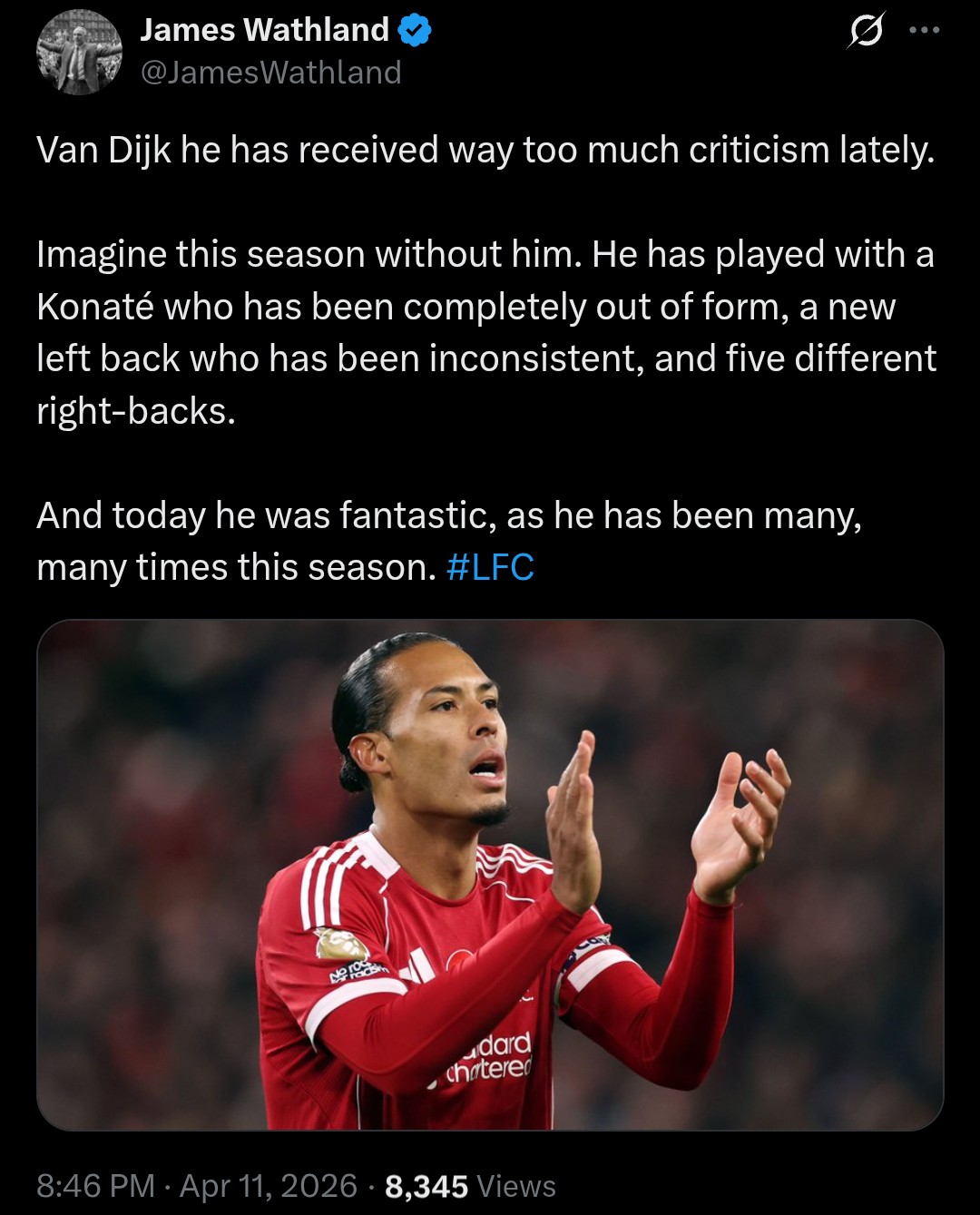 Przytaczasz przyklady dotyczace gry VvD, ktore idealnie pasuja do gry Salaha po czym pytasz “czemu Salaha nie, a VvD tak”. No troche szacunku - do siebie i do nas.