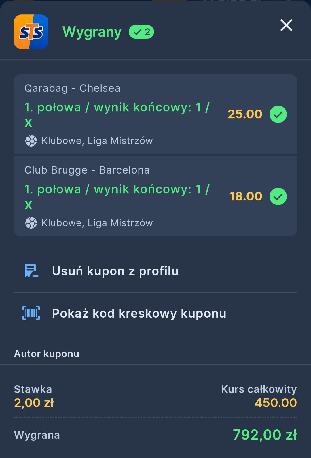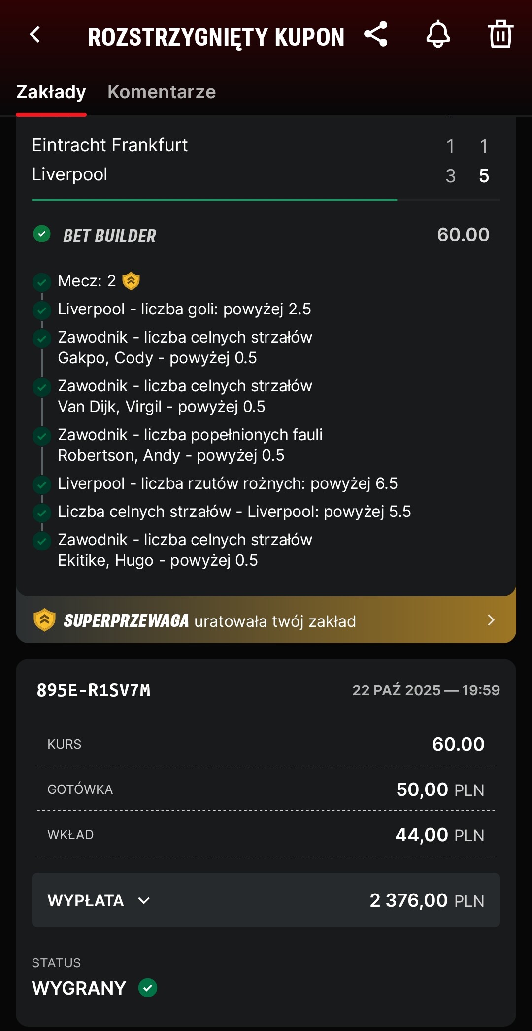 Świetny kupon, nigdy w życiu nie trafiłem z podobnym kursem, gratulacje ![]()